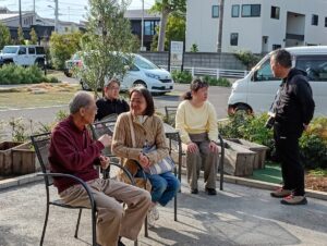 食事の後は、テラスに出て心地よい風が吹く中、皆さんで日向ぼっこをしました。「たまには散歩もいいね」、「また、みんなで行きたいね」などの声も上がりました。